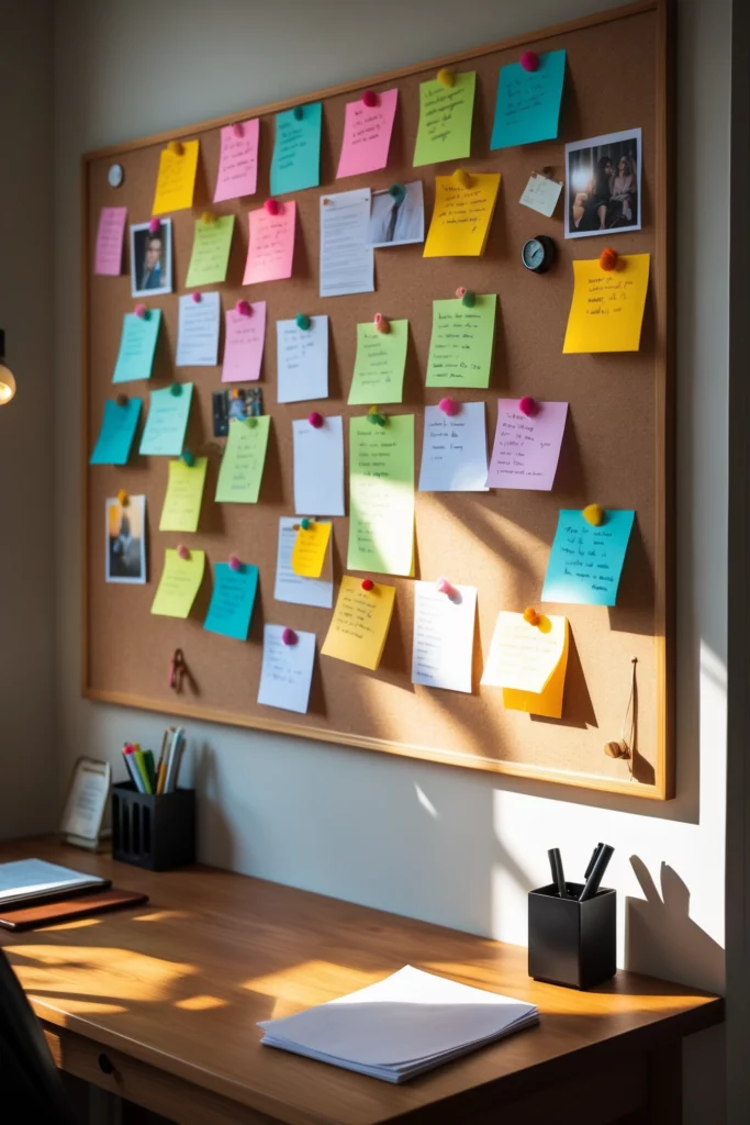 My desk was chaos until I added a pinboard to keep things tidy and inspiring. You’ll feel more productive when your work area looks this good with just one change.