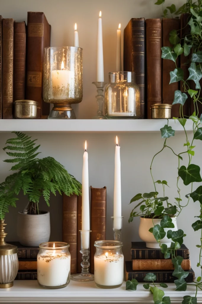 Instead of random clutter, I styled my shelf with a few books, a candle, and a plant. You can do this too—it makes your space feel more intentional and less messy.