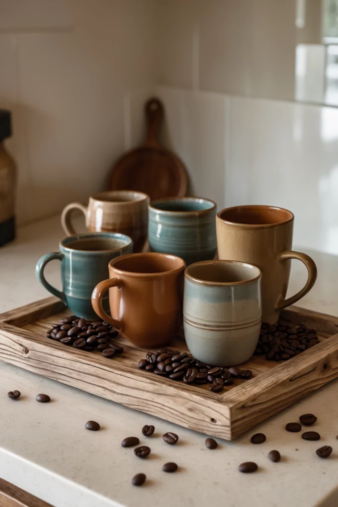 I cleared one counter, added a tray, some mugs, and a little plant. Now, that spot is my cute coffee station. You can do it with just what you already have.