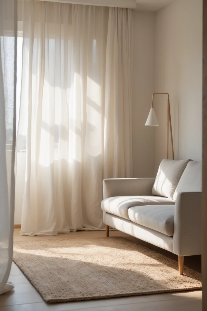 Lighting has a huge impact on how a home feels. I keep my curtains light and open during the day to let in as much sunshine as possible. It instantly boosts my mood. If you don’t get much natural light, use warm LED lights to create a cozy atmosphere.