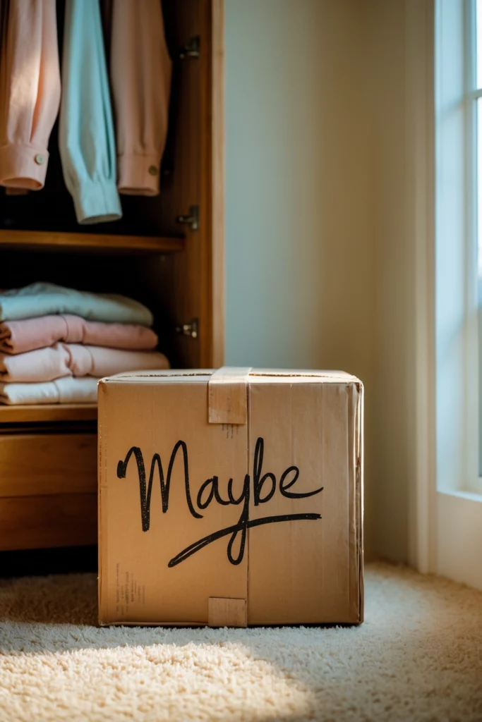 There were pieces I wasn’t ready to toss, so I made a “maybe” box. I packed them away for 30 days. If I didn’t go back for them, I donated them. You’ll be surprised how many things you won’t miss.