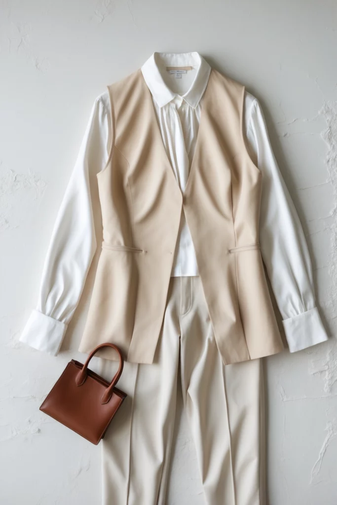 Layering a long vest over a soft blouse and tailored pants adds structure without fuss. It’s an easy way to look sharp without trying too hard