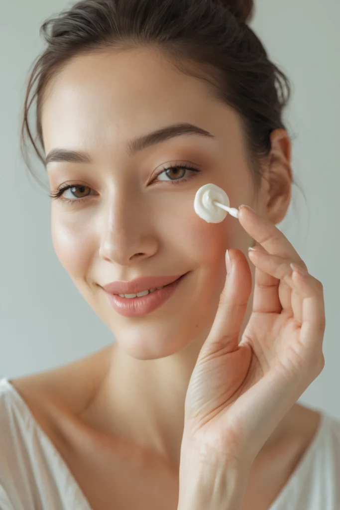 The skin under your eyes is super delicate. I use a cooling eye cream that hydrates and reduces puffiness. You should never skip this if you want that bright-eyed look.