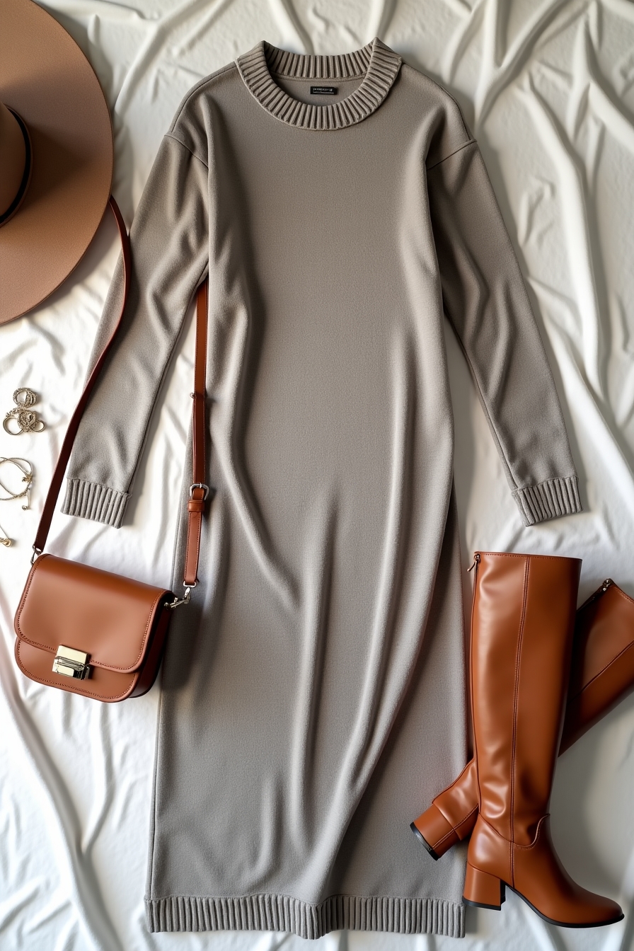 A knit sweater dress is the ultimate cozy yet chic outfit. It’s incredibly easy to wear and can be dressed up with ankle boots and a long pendant necklace, giving you a more polished look. This combination is perfect for those days when you want to feel both comfortable and put together effortlessly.