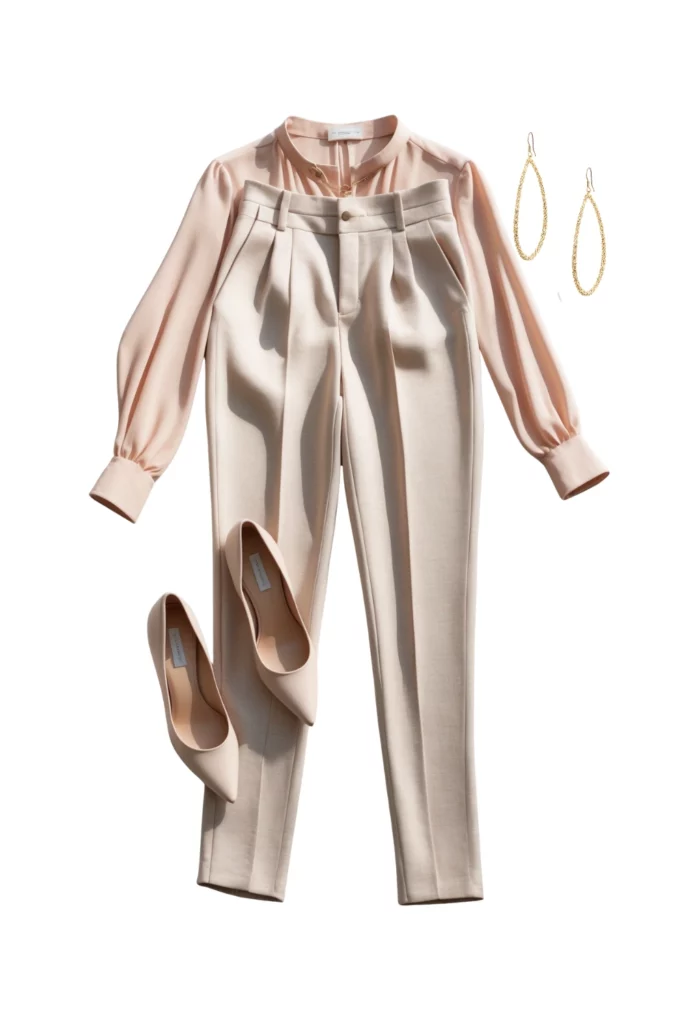 The balance between tailored and relaxed makes this outfit perfect for dinner or work. A pair of pointed flats completes the look effortlessly.