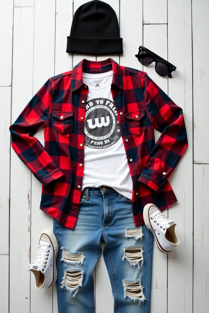 Layering a plaid shirt over a graphic tee is a great way to mix comfort with style.