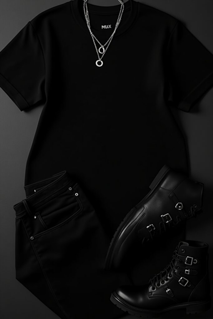 You can never go wrong with an all-black outfit. Pair a black tee or tank with black jeans and combat boots for a simple yet powerful look.