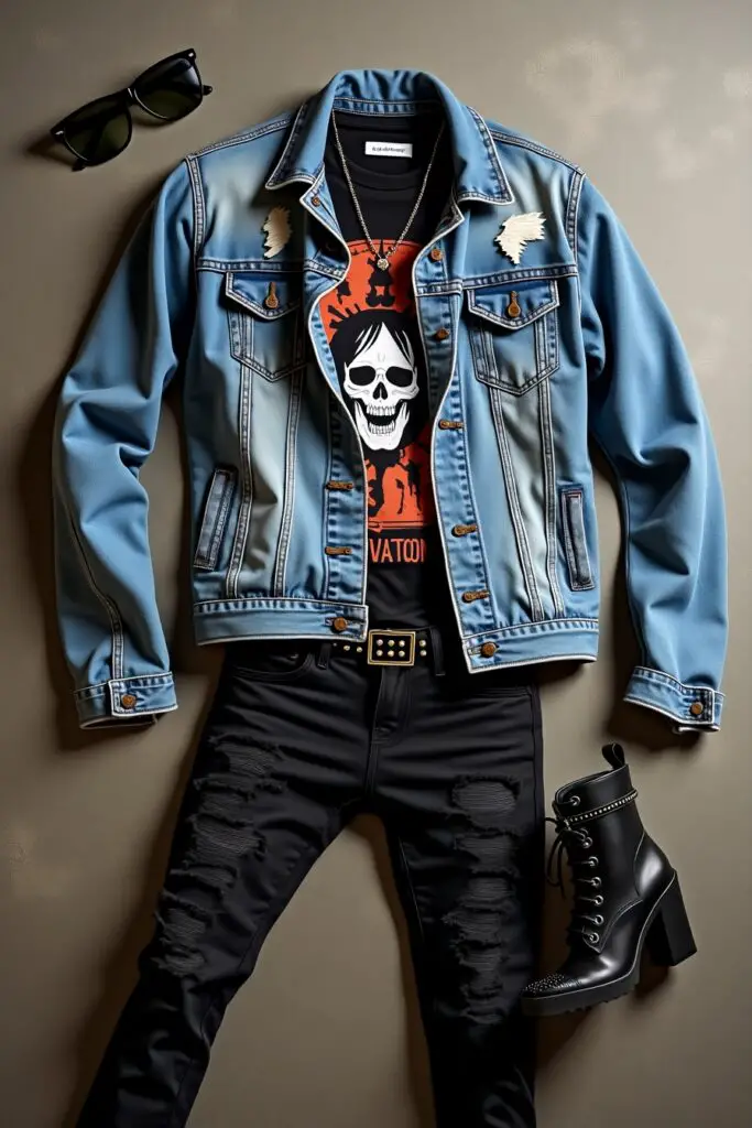Each of these outfits combines comfort with style, ensuring you can enjoy the music while looking effortlessly cool. Whether you prefer the timeless appeal of a distressed denim jacket with a band tee or want to make a statement with a mesh top and leather pants, there’s something here for everyone.
