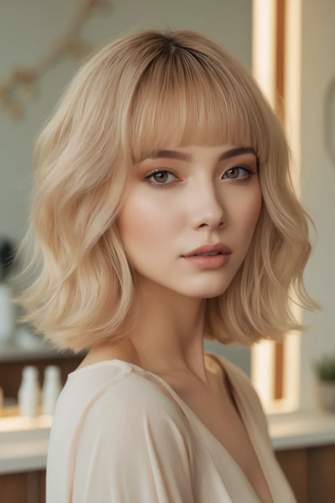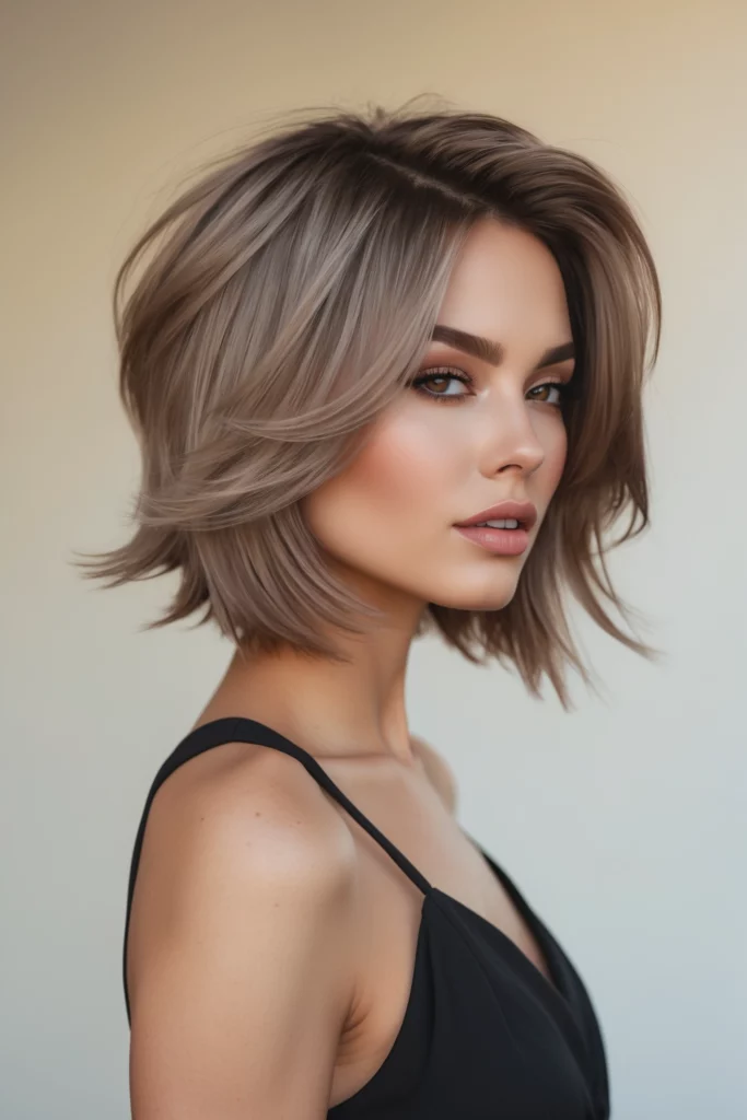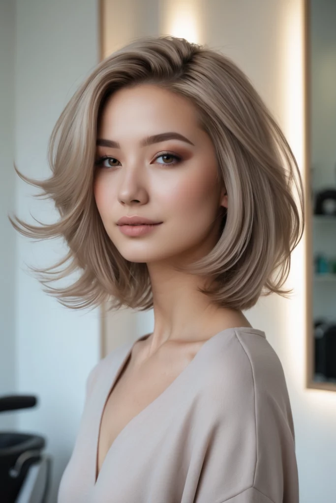 I love how this cut looks sharp but still feminine. It’s longer in the front and shorter in the back, which adds nice shape and volume. You’ll look polished and modern.