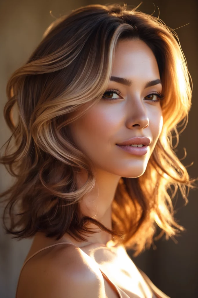 This is one of my favorite casual looks. The waves give movement, and subtle highlights brighten up your face. You’ll feel more playful and glowing with this one.