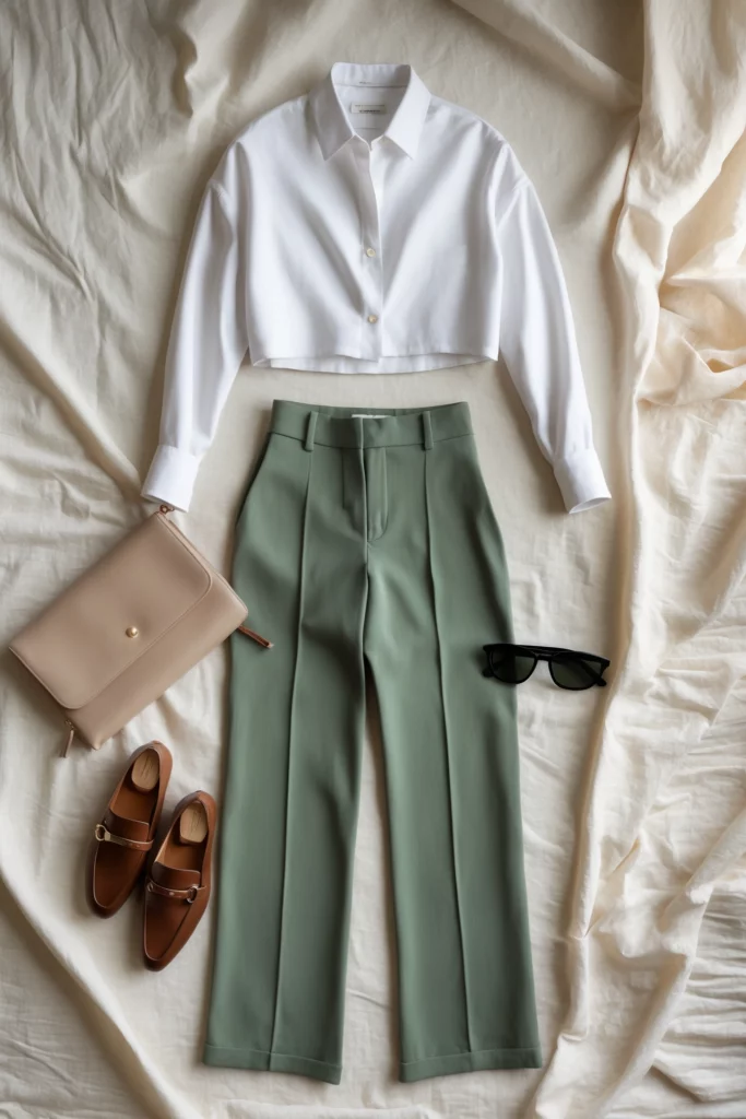 This outfit made me feel polished without trying too hard. The cropped shirt adds a fun twist, and the wide-leg pants keep it airy. If you love a clean and comfy look, you need this outfit in your life.