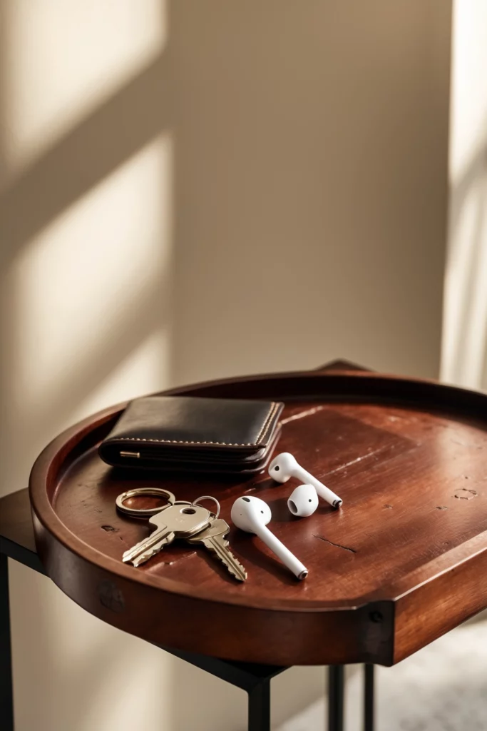 I created a small tray by the door for keys, wallet, and headphones. No more running around looking for stuff. Try this and you’ll save time every single day.