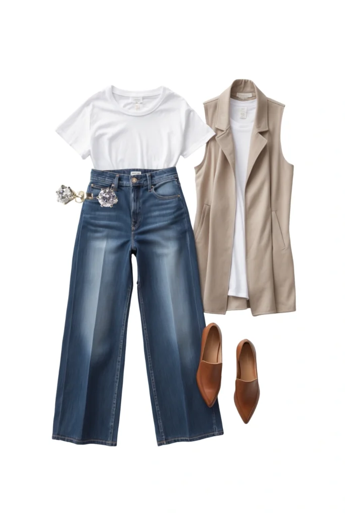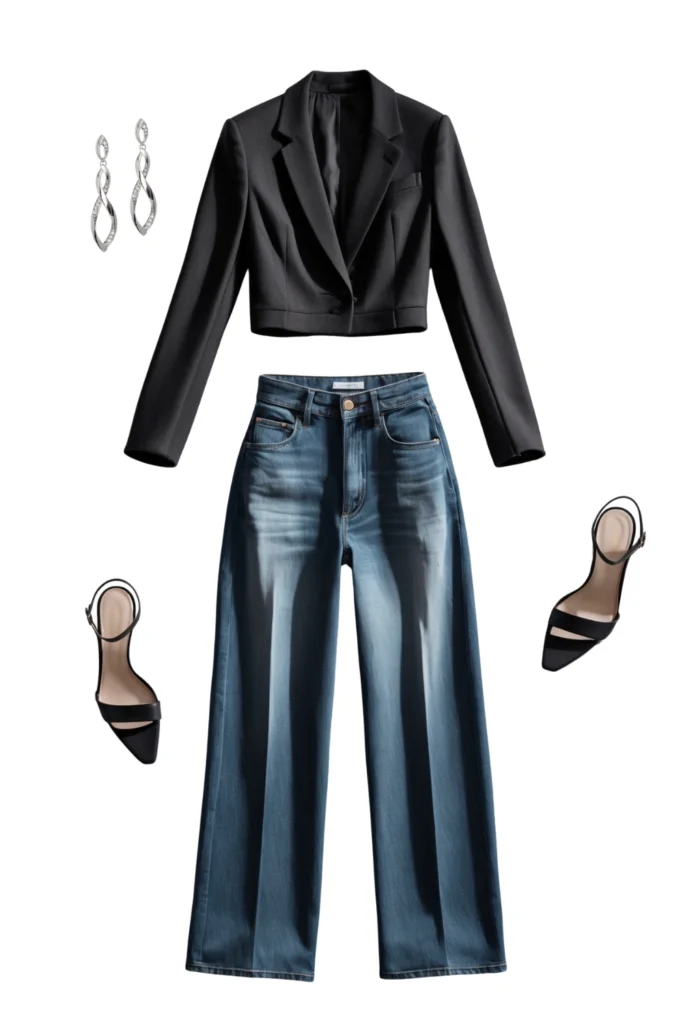 This combo gives you that clean, modern aesthetic. The sharp angles of a cropped blazer contrast beautifully with the relaxed shape of wide leg jeans. I wore it for a casual dinner party and felt super polished.