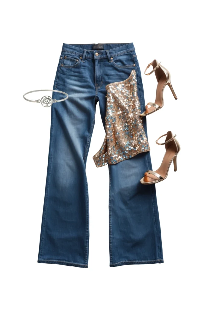 Sometimes you need just one standout piece. I wore my wide leg jeans with a sequin top for a night out and loved how the denim toned things down just enough. It’s the kind of outfit that says “I tried” without trying too hard.