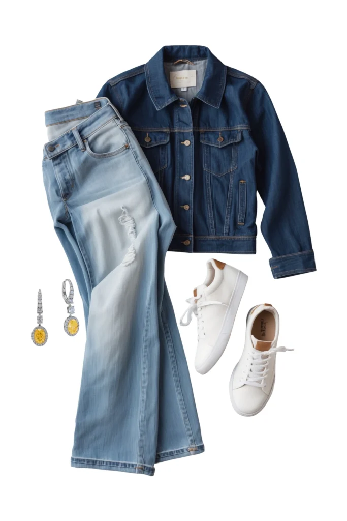 A denim on denim look always feels cool when done right. I went for slightly different washes to create contrast like light wash jeans with a dark boxy jacket. It gave off those 90s vibes I love.