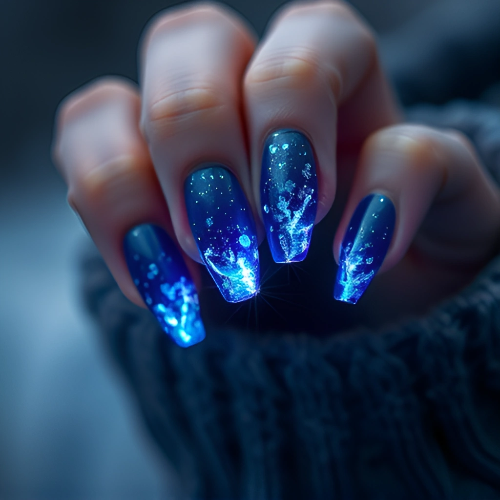 Blue Frostbite Magic gives off such a cool and edgy vibe. I think you’d enjoy how the frosty blue base pairs with metallic accents. It’s a bold look that screams winter chic and is sure to grab attention wherever you go.